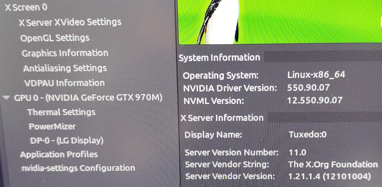 Die 1. Version des Systems erschien 2022, mit Basis Ubuntu 22.04 LTS. Limitiert durch "die Technologie seiner Zeit" hielt stattdessen später Ubuntu 18.04 und noch später Linux Mint Einzug. Dank manuell installiertem "Tuxedo-Control-Center", das gibt es nämlich auch auf nicht-Tuxedo-Betriebssystemen, mangelte es lange Zeit an nichts. Mit der Linux Mint Installation landeten NVidia-Treiber in Version 550.90.07 auf dem System, die ich, genau so wie das installierte Betriebssystem selbst, mangels Initiative und Bedarf seither nicht mehr anrührte.