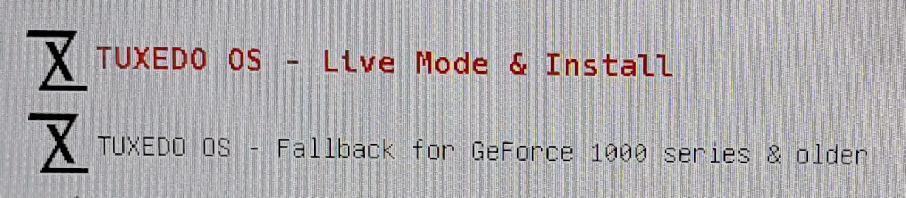 Es folgt das Bootmenü von Tuxedo OS. Man steht vor der Wahl: "Live Mode & Install" oder "Fallback for Geforce 1000 Series & older". Moment, "Geforce 1000 und älter"? Im XC1706 ist eine Geforce 970M verbaut die bisher tadellos funktionierte. "Fallback" klingt hingegen nach Notlösung und nicht besonders performant. Müsste ich unter Tuxedo OS etwa auf Leistung verzichten?