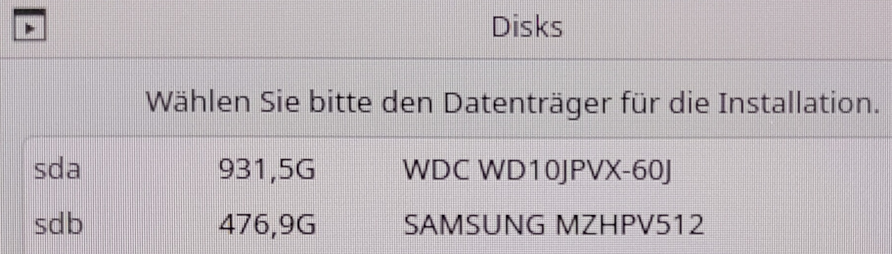 Das erste Fragezeichen stand hinter dem Begriff "Verschlüsselung". Nach dem Start entscheidet man, ob das OS mit oder ohne Verschlüsselung installiert wird. Ich habe mich für die Verschlüsselung entschieden. Nun erkannte der Assistent, dass zwei Datenträger im Gerät verbaut sind. Ich wählte die M.2 SSD aus und setzte fort.